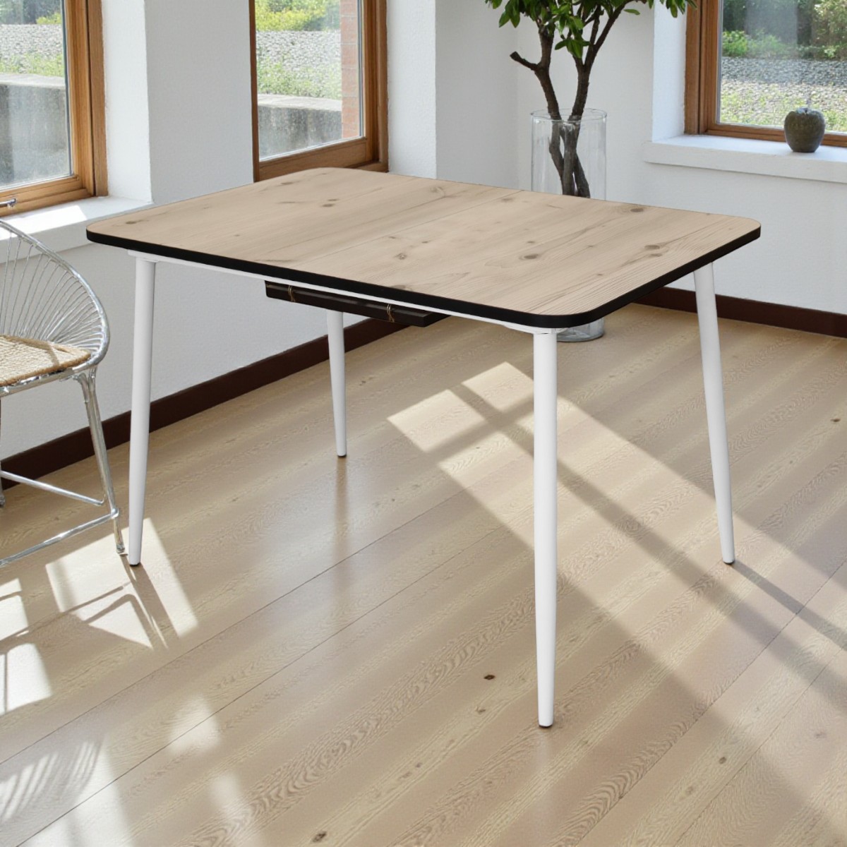 —Стол Корсика,1200(+400)*800, бабочка,металл белый, пластик Биск.сосна, B1