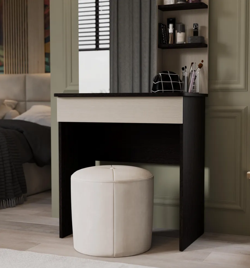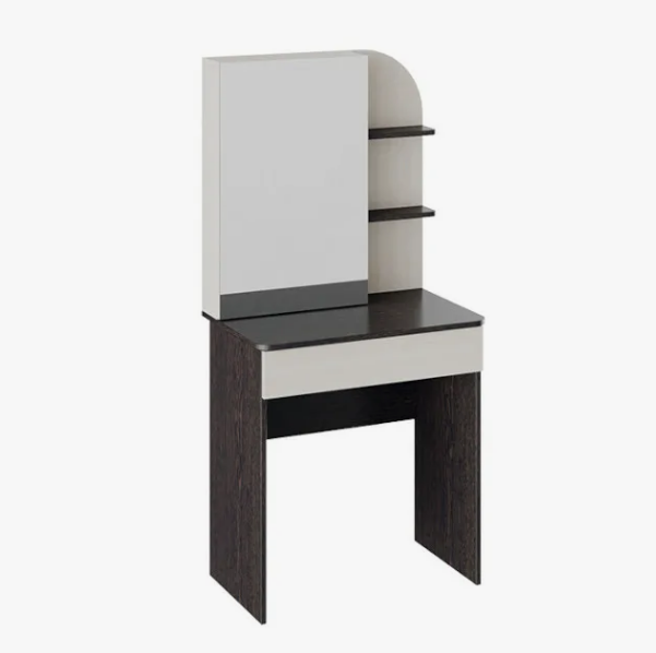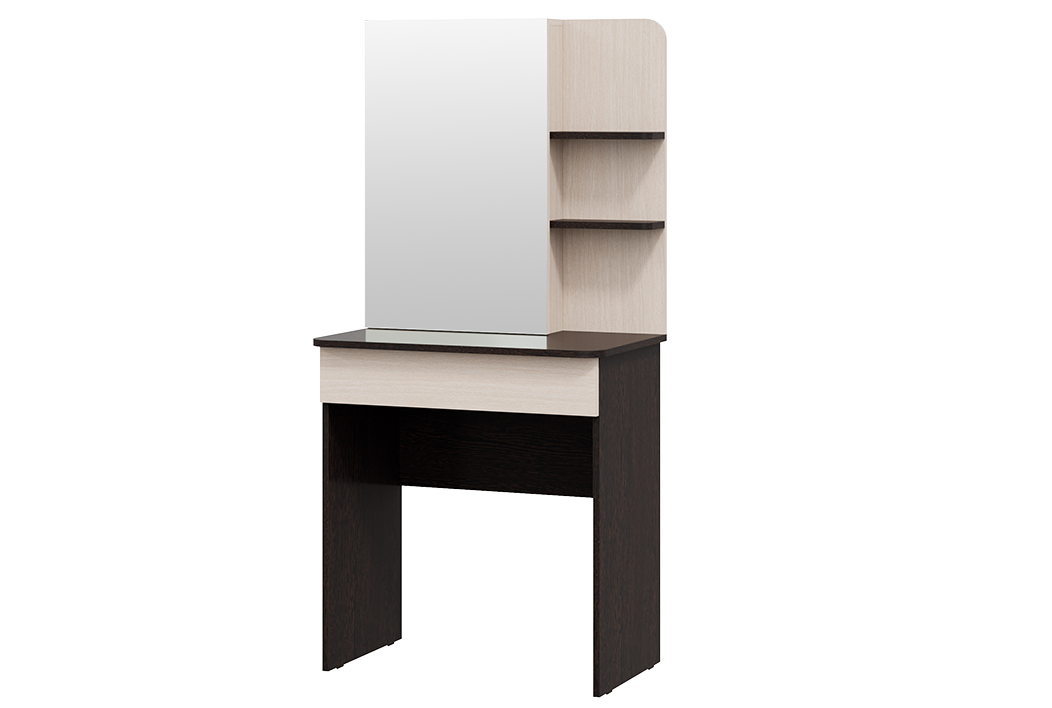 • Стол туалетный «Майя» отличается плавными линиями и универсальными текстурами, которые создают основу для дальнейшего оформления комнаты в различных стилях. Наличие открытых и скрытых полок, зеркала представляют собой главные атрибуты современного туалетного столика.