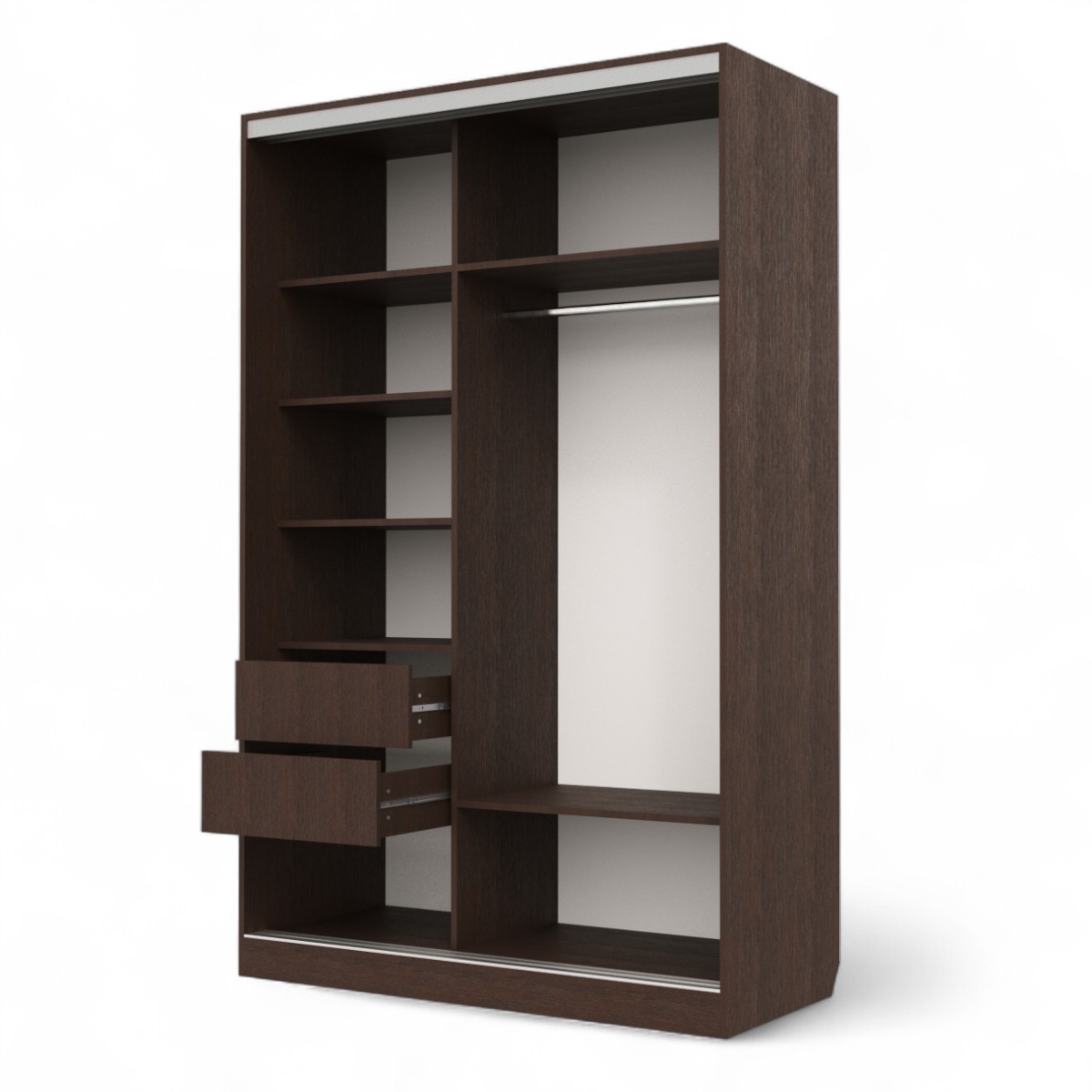 Внутри вас ждут два удобных выдвижных ящика и вместительная штанга для одежды.